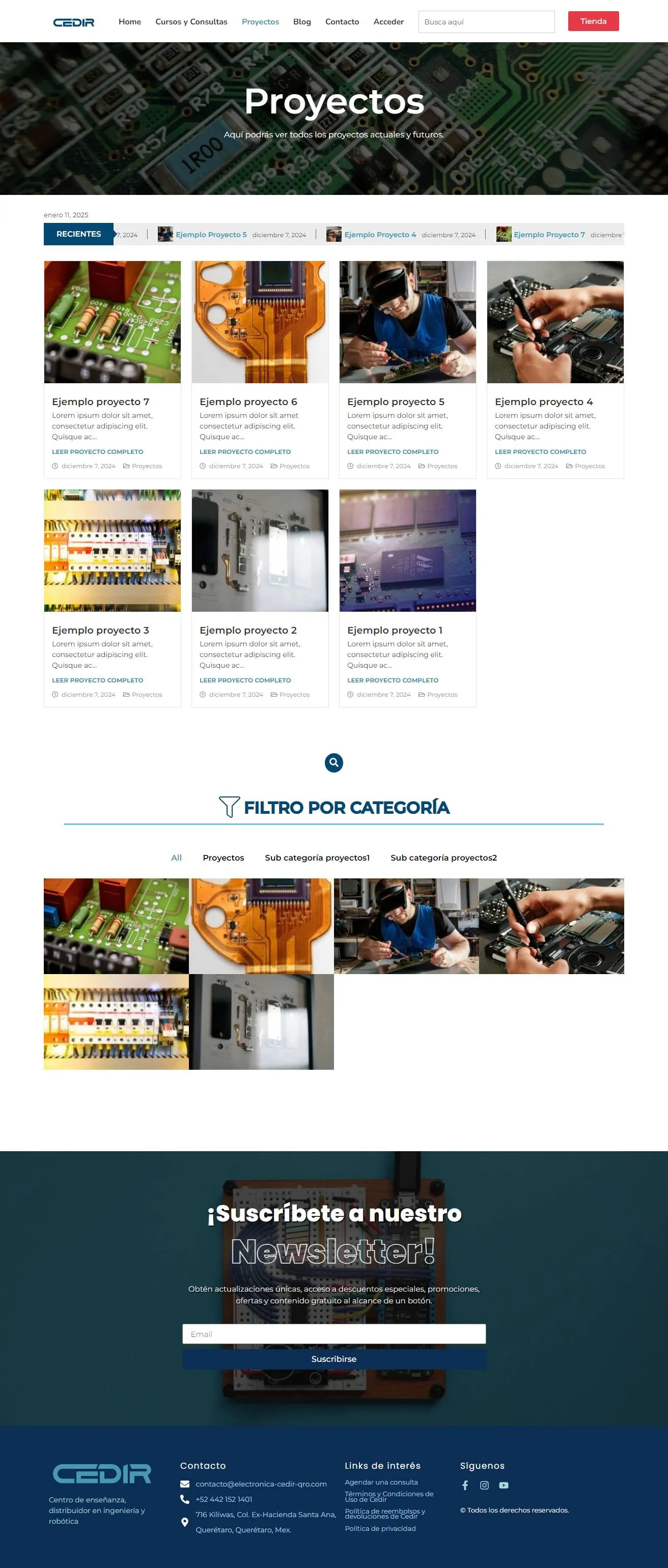 Content Authority: A robust Blog & Project Portfolio filtered by specialized categories, allowing the client to showcase technical expertise and improve Organic Search (SEO) visibility.